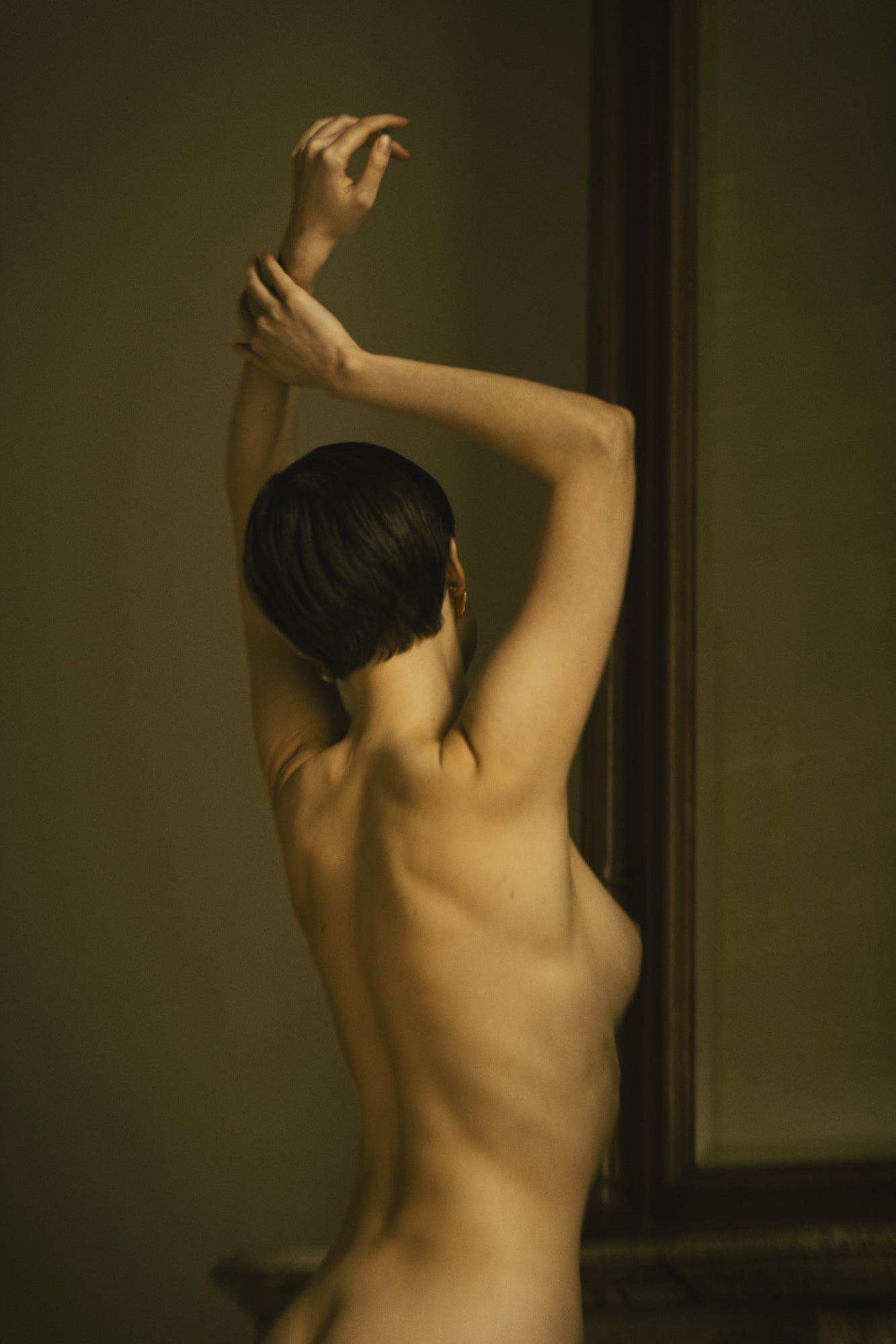 The photograph, sized 30 x 40 cm, is printed on satin Hahnemühle certified paper, which ensures a fine texture and deep tonal range. On the back, the work is sealed with a wax stamp bearing the initials HG, confirming authenticity. The frame was hand selected to echo the cinematic atmosphere of the image. This is a unique piece, created only once.