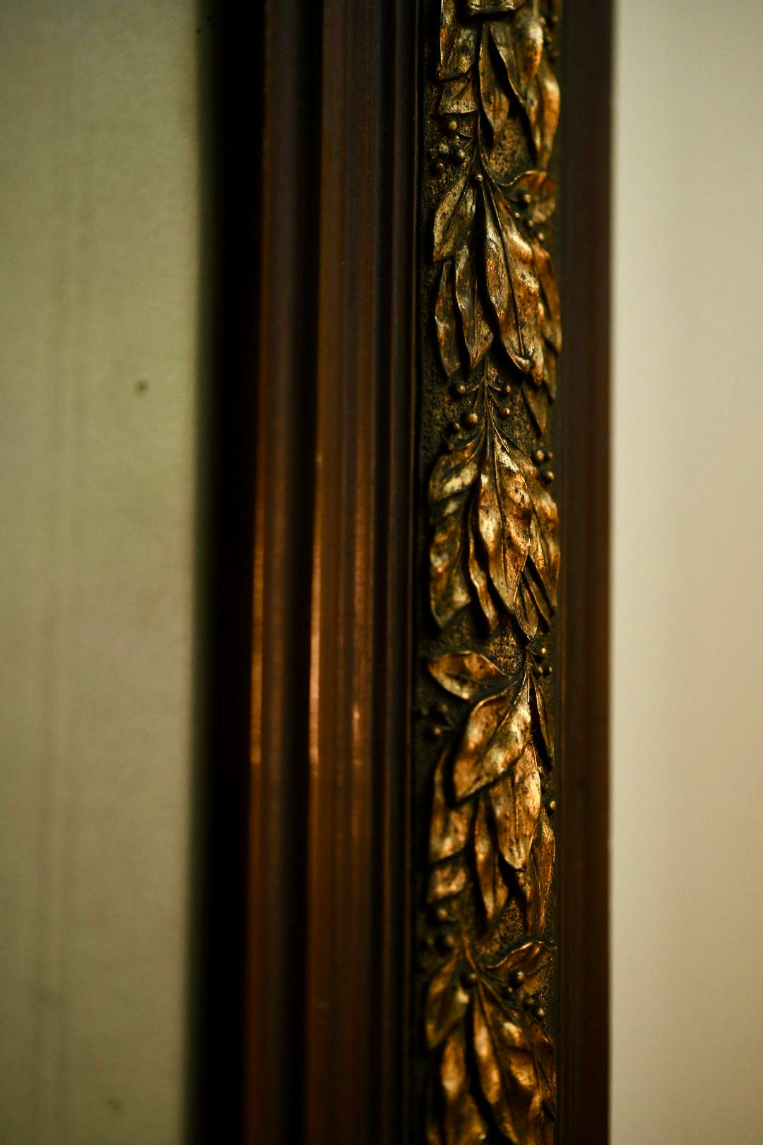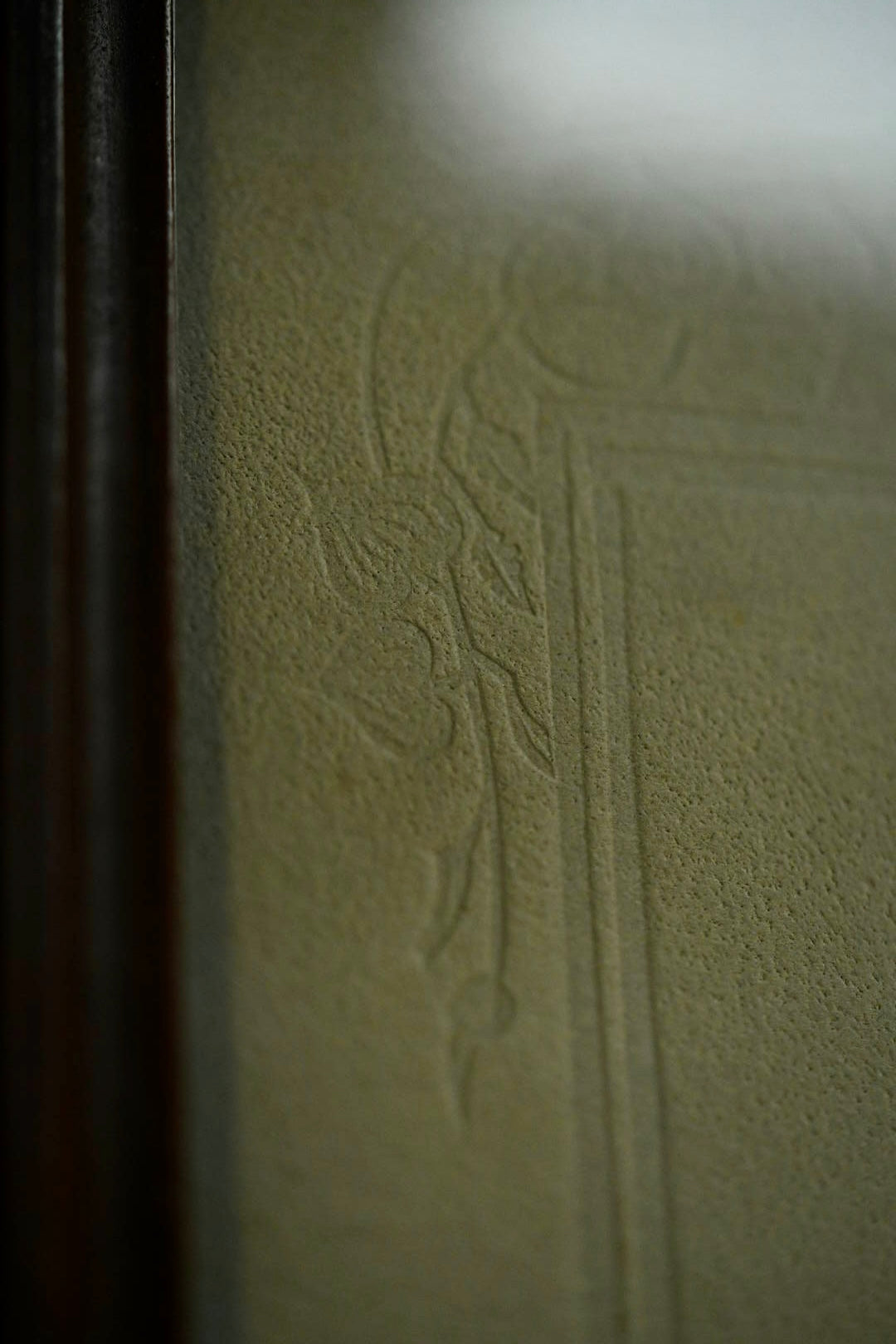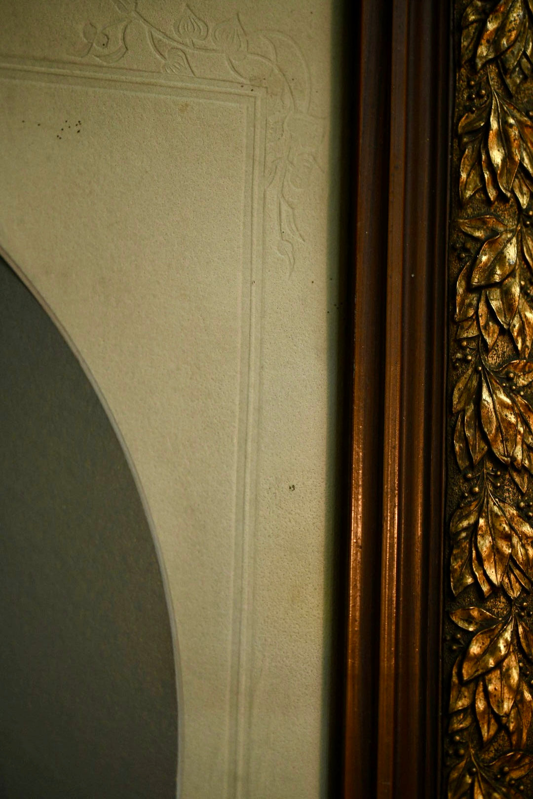 Printed on fine Hahnemühle paper, the photograph is mounted within a rare antique passe-partout, embossed with intricate floral relief. The texture feels almost sculpted, its quiet ornament tracing the outline of time. The vintage frame, rich with patina and gilded leaves, holds a sheet of original drawn glass — subtly uneven, bending light into a living surface.